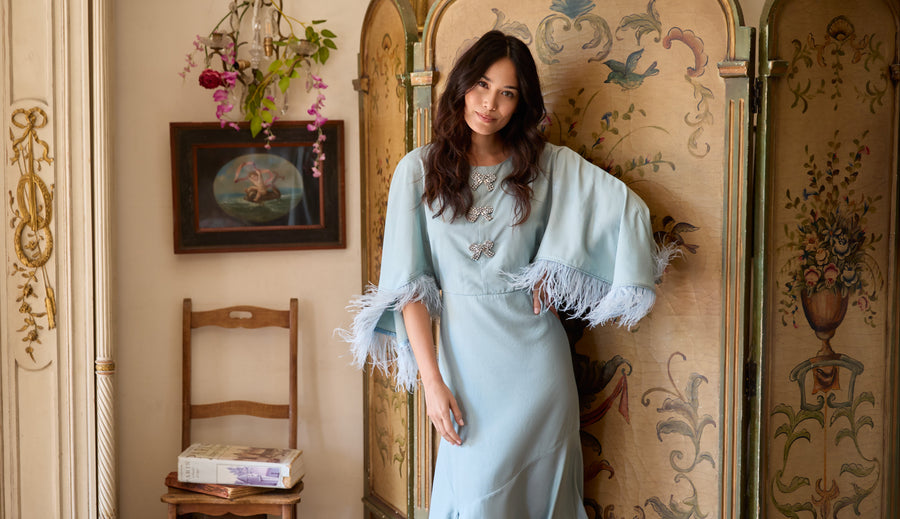 Enter a winter’s night dreamscape, where romance intertwines with opulence. Our newest autumn collection, A Baroque Bouquet, draws inspiration from the splendor of the Baroque era and the spellbinding allure of winter florals. Lush textures, folkloric silhouettes, and ornate details unfold like a masterpiece, capturing the spirit of black-tie soirées in gilded ballrooms. Each design is a tribute to timeless elegance—crafted for the modern muse who delights in the poetic and the dramatic.