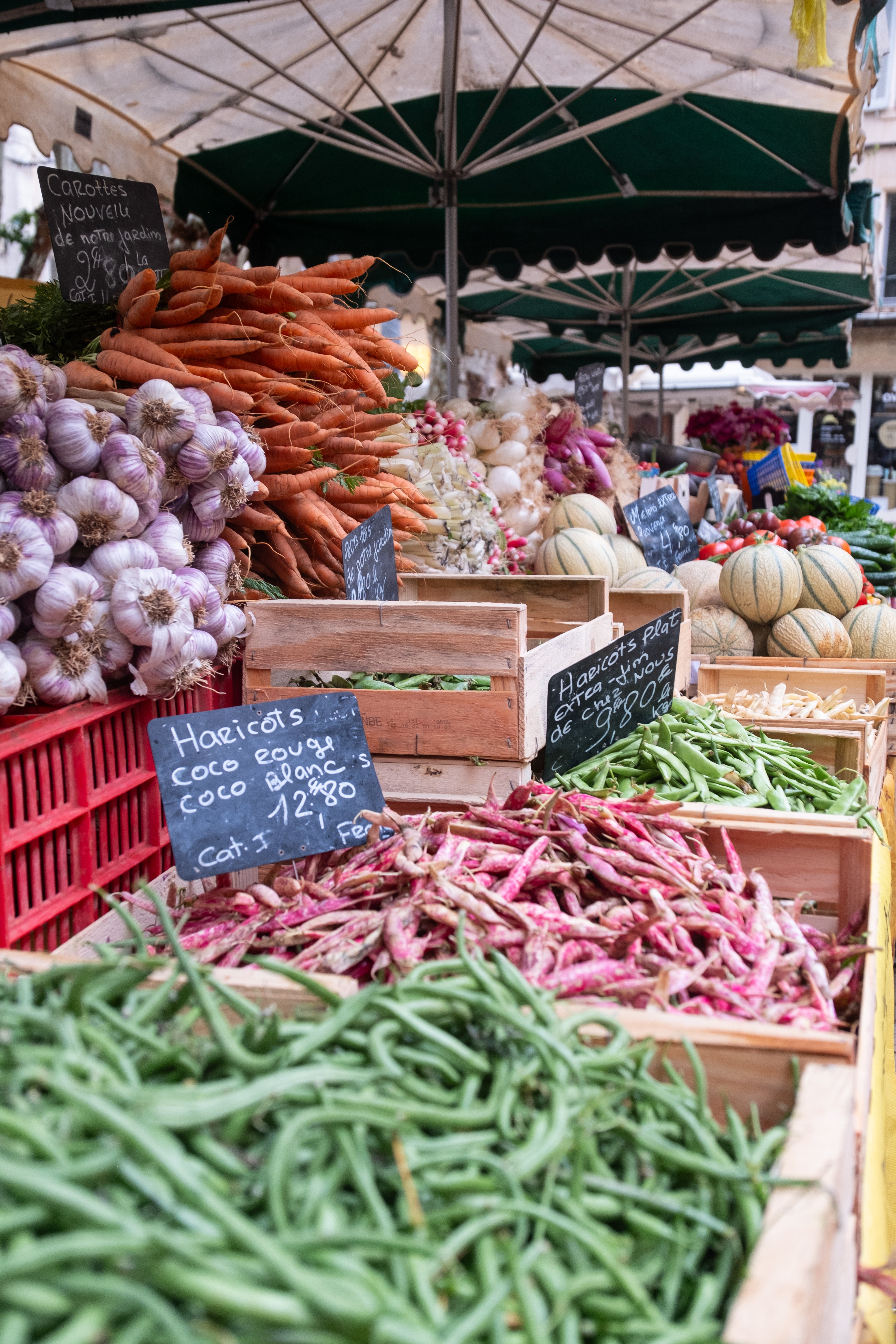 We shot a total of 14 looks across the day, making full use of Aix’s cobbled streets and squares, and even stopping by a beautiful fountain. As locals looked on, we dodged the rain clouds and meandered through stalls selling an abundance of delicious vegetables and fragrant bouquets of lavender.