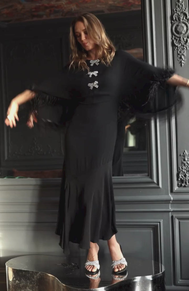 If you’ve been searching for the ultimate winter party look, this may be the dress for you. Introducing The Helena, a brand-new dress for our AW25, and a true showstopper. With dramatic, feather-trimmed flutter sleeves, this elegant midi dress is a dream come true for seasonal occasions such as Christmas parties and winter weddings. With three embellished bows decorating the front of this eye-catching outfit, she’s the ultimate outfit for your next event.
