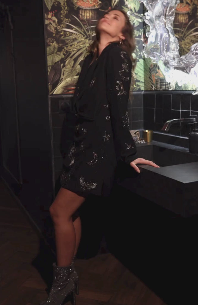 Let the cosmic sparkle shine by pairing it with gold accessories, metallic heels, and a sleek clutch for a truly show-stopping look.
